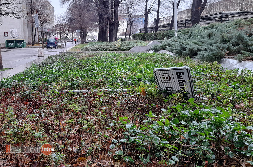 Вандали са съборили табела в градинка в центъра на Хасково.