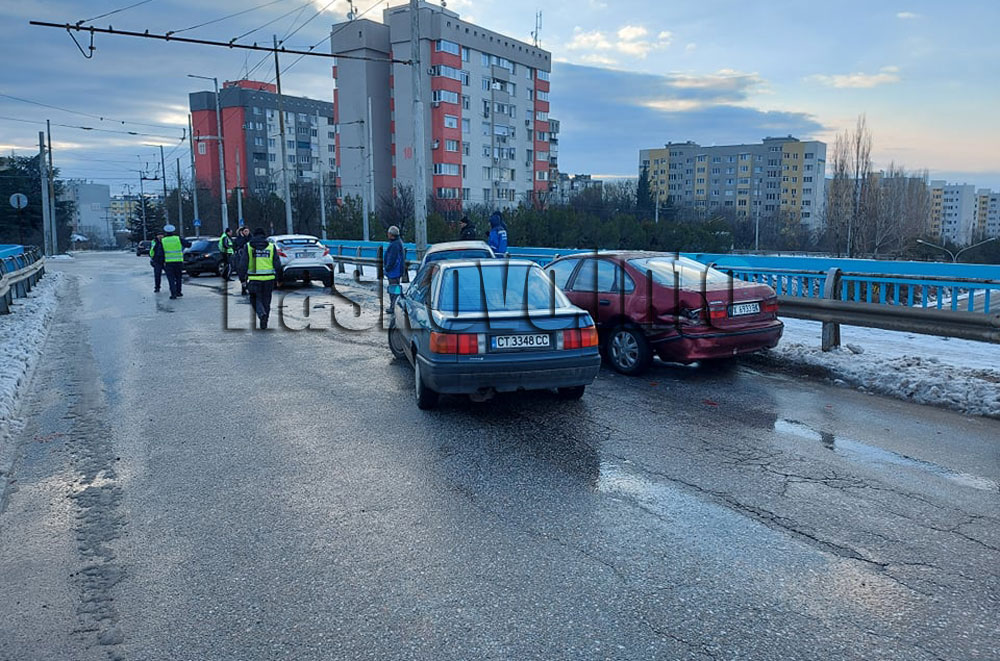 Верижна катастрофа с 6 коли стана тази сутрин на заледената детелина на квартал „Орфей“ в Хасково.