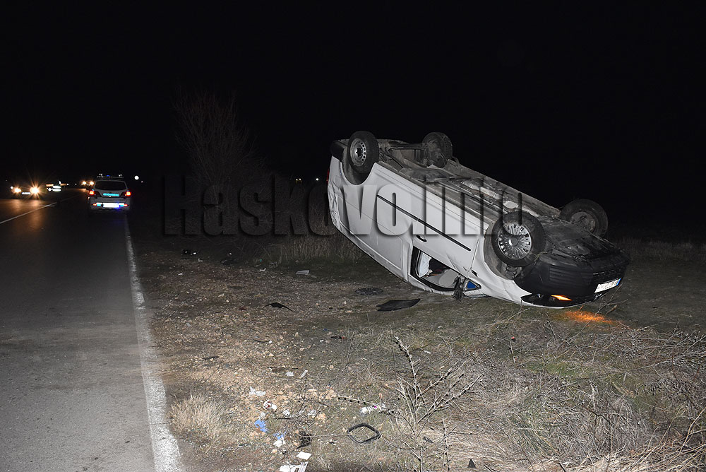 Автомобил се обърна след удар в каруца на Е-80 край Хасково. Инцидентът стана привечер в района на Ходжова чешма.
