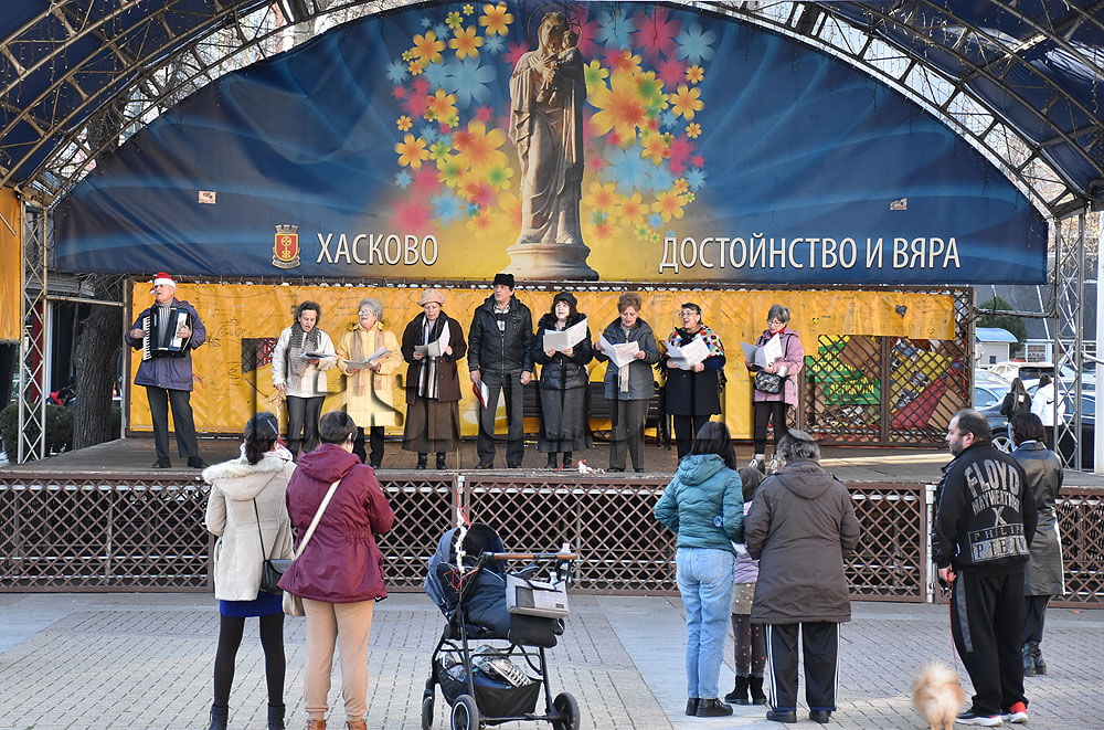 Вокална група „Лотос бял“ с ръководител Стефан Милев изнесе следобед Коледен концерт на сцената на площад „Свобода“ в Хасково.