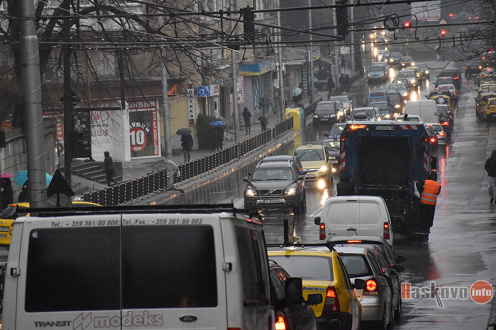 В първия работен ден след Коледните празници се образуваха задръствания по дъждовните булеварди на Хасково.