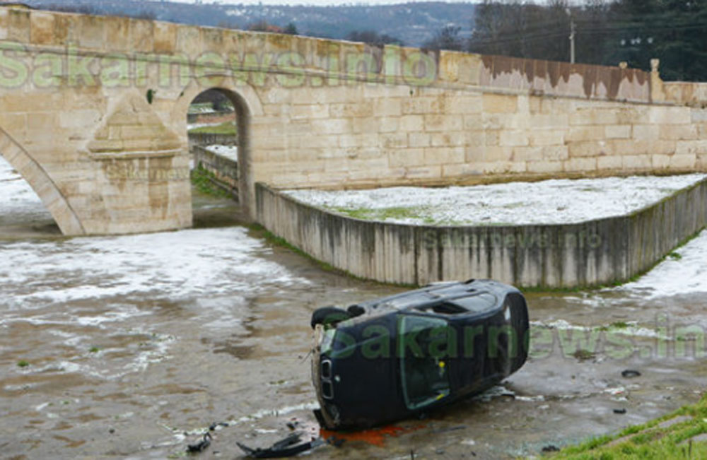Кола прелетя през тротоар и падна под гърбавия мост в Харманли