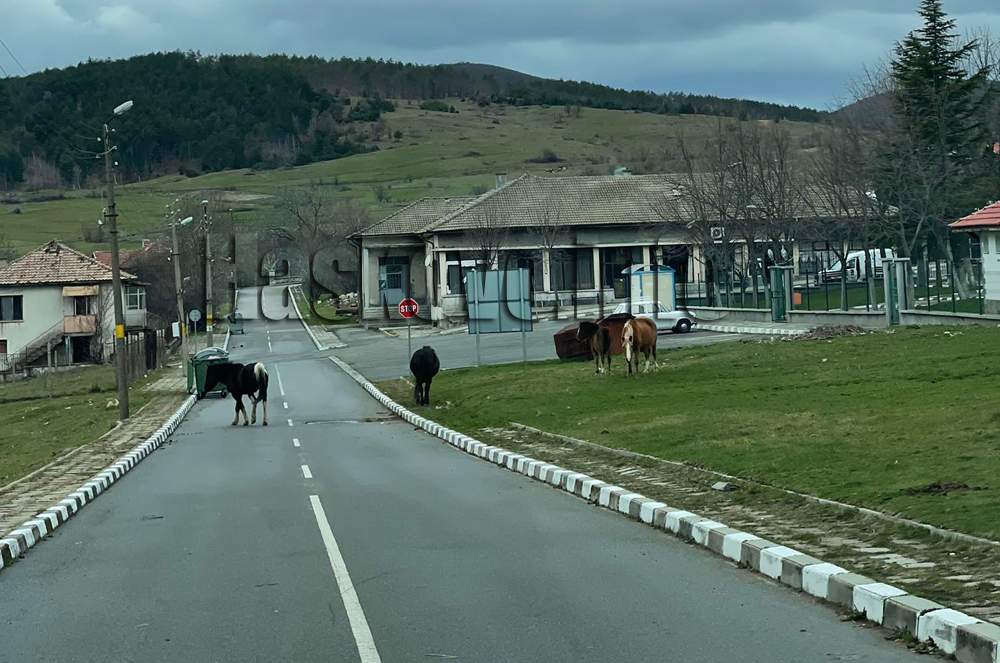 Този път животните са в самия център на селото. „Тази гледка е пред кметството в село Сърница“, се казва в сигнала. Хората настояват тази практика да бъде прекратена, защото може да станат пътни инциденти.