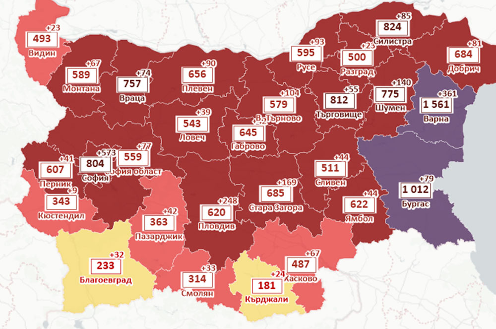 2 759 са новозаразените в страната при направени 22 417 теста. 99 са починали, а оздравелите са 5 833. 3 918 са настанени в болница, като 473 са в интензивни отделения. Поставени са 2 902 дози ваксина.