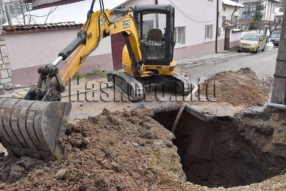 Екипът на водното дружество е разкопал улицата, като се очаква аварията да бъде отстранена скоро и водоподаването възстановено.