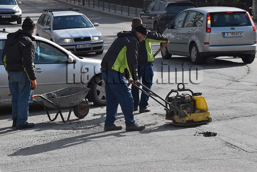 Работници от „Екопрогрес“ подновиха закърпването на дупките по основните хасковски улици и булеварди със студена асфалтова смес.