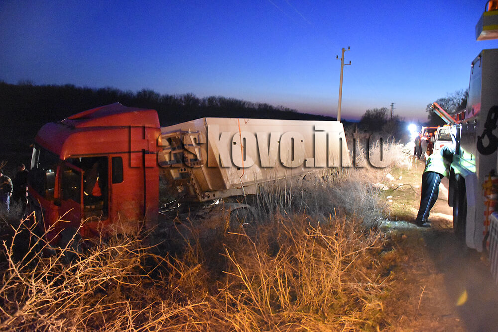 Произшествието стана на пътя за димитровградското село Добрич. Предполага се, че шофьорът се е разсеял, едно от колелата е хлътнало в калта край пътя и целият камион е тръгнал към нивата, където се е преобърнал. Водачът не е пострадал и не е употребил алкохол.
