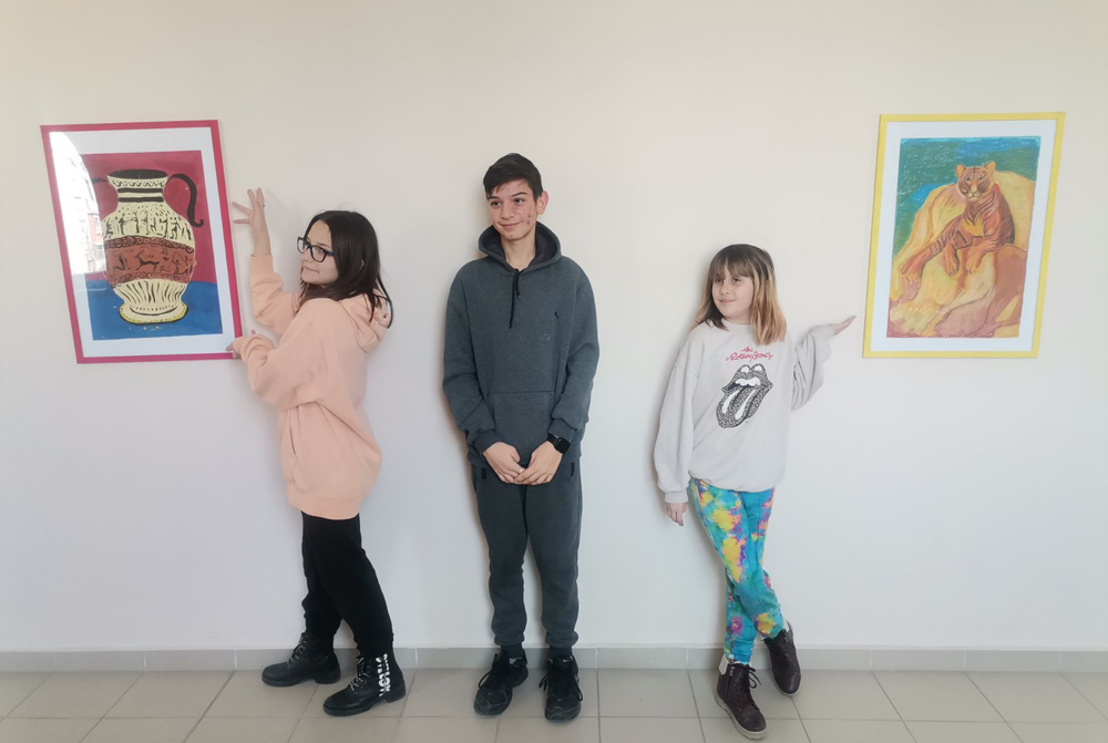 Над 40 картини са изложени по всички коридори и фоайета на иновативното училище. С портрети на Васил Левски и Христо Ботев е украсена и стаята на учителите.