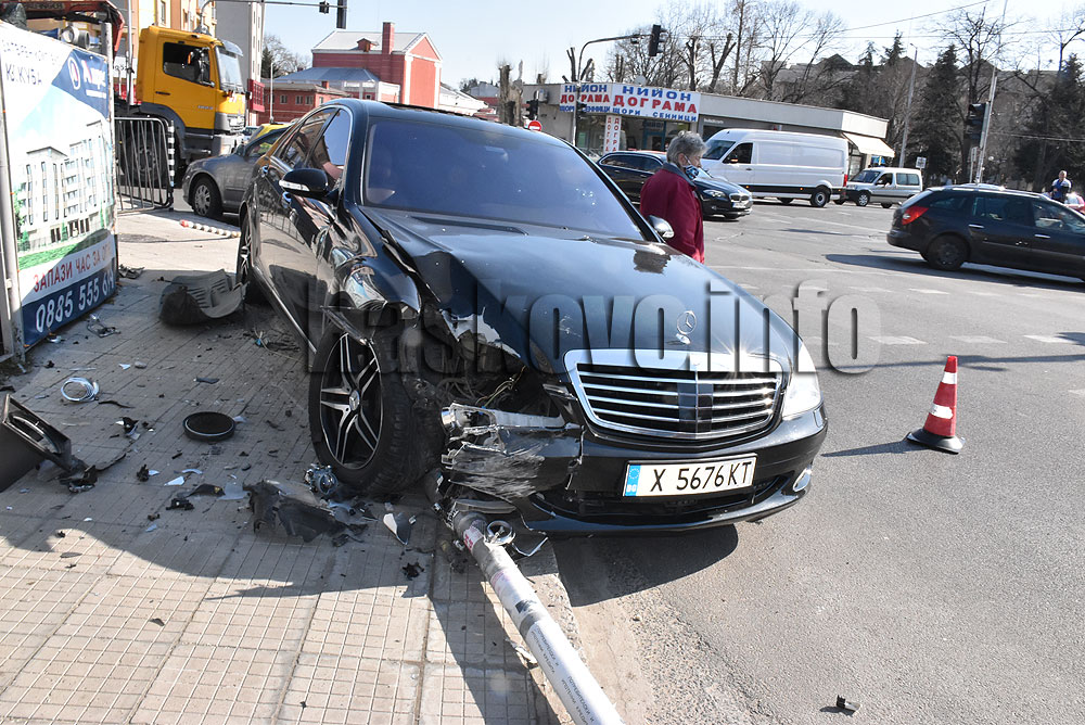 Произшествието стана малко след 15 часа. Шофьорът на Шкодата със софийска регистрация разказа пред Haskovo.info, че не е от града, опитал се е да направи ляв завой към „Съединение“ и е отнел предимството на движещия се насреща по „България“ Мерцедес. За да избегне ударът с Шкодата водачът на Мерцедеса е свил към тротоара, където е блъснал пешеходка, заграждения и е съборил една от секциите на светофара.