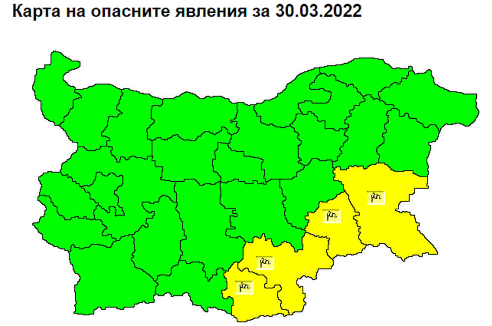 Ще духа временно силен югозападен вятър с пориви до 70 км/ч. Предупреждението е в сила още за областите Кърджали, Ямбол и Бургас.