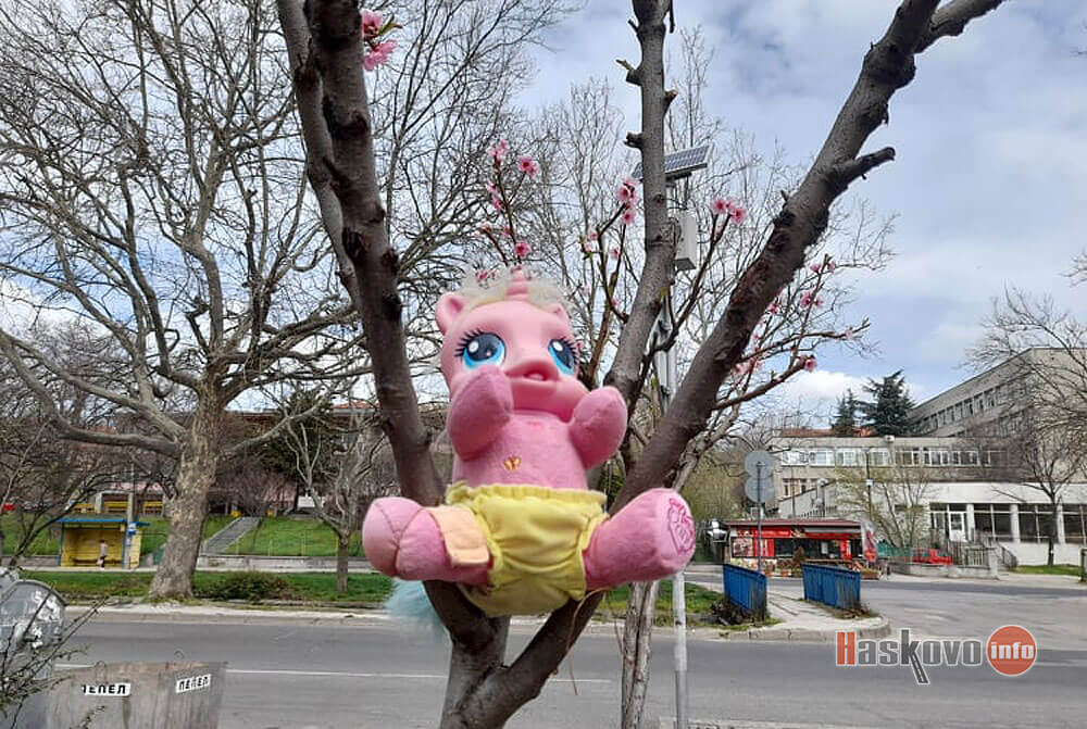 Шегаджия е измислил нестандартна украса на цъфнало дръвче на хасковския булевард „Илинден“.