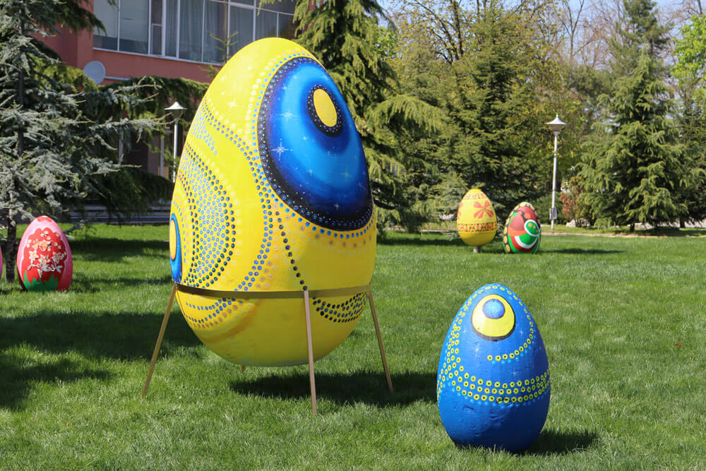 Пъстра великденска украса радва жителите на Любимец. Атрактивен фон за празнични снимки е двуметрово яйце, оцветено по артистичен начин с неонови бои.
