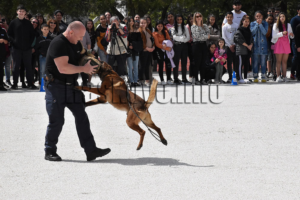 Демонстрация по задържане на нарушител с помощта на полицейско куче беше направена преди обяд в двора на хасковското училище „Шандор Петьофи“.