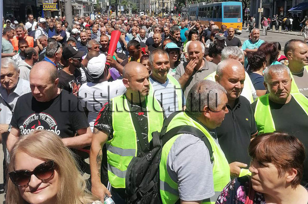 По-късно работниците се събраха пред Лъвов мост с плакати с надписи – „Днес зелен режим, утре режим на тока“, „Не убивайте енергетиката“, „Зелена операция ликвидира българската енергетика“.
