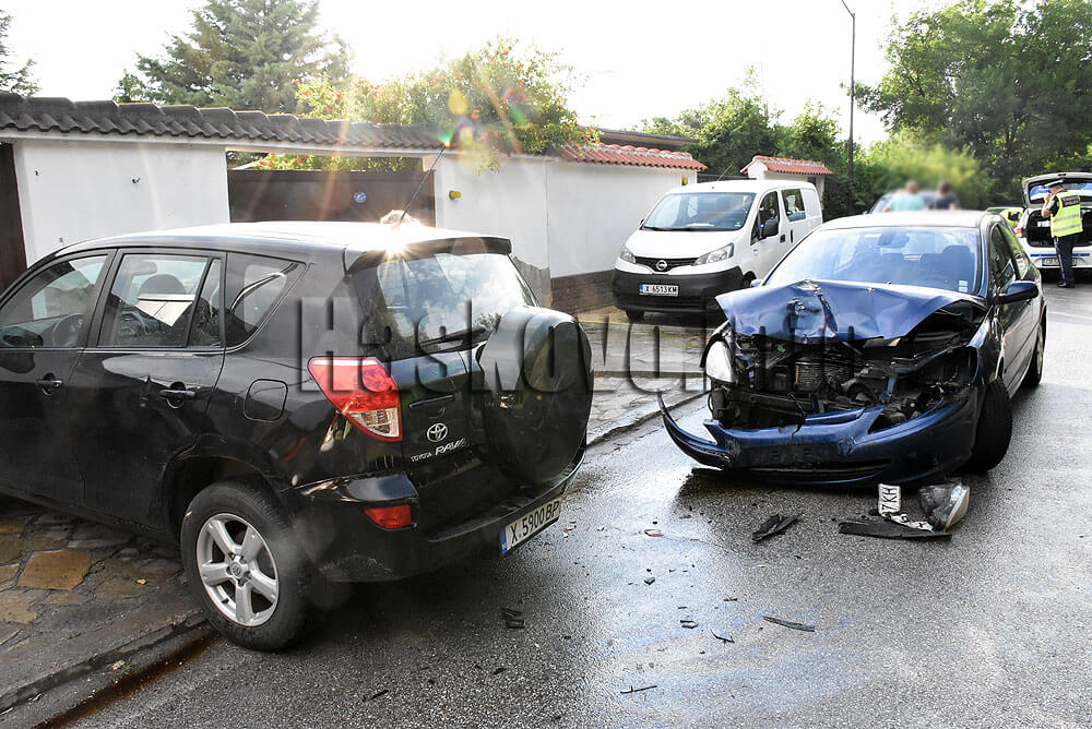 Джип Тойота е излизал на заден ход от двора на къща, когато по пътя в посока центъра се е спускал лек автомобил Пежо и е последвал сблъсък. При инцидента няма пострадали, а само материални щети по колите. Водачите не са употребили алкохол.
