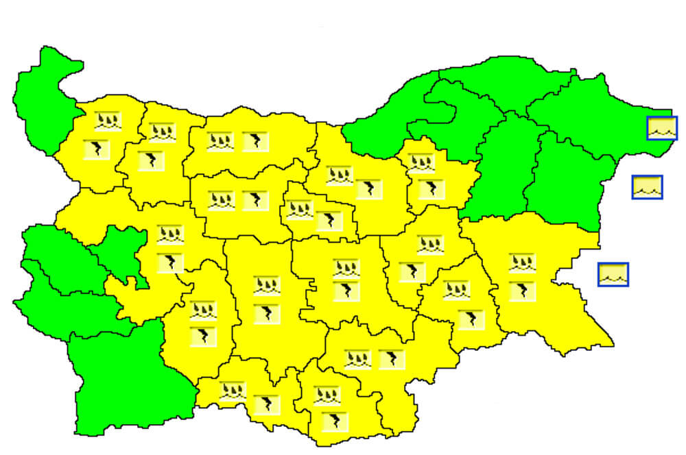 За днес също е обявен жълт код. Очакват се нови значителни валежи на места до 20 – 35 литра на квадратен метър за денонощието, предупреждават от Националния институт по метеорология и хидрология.