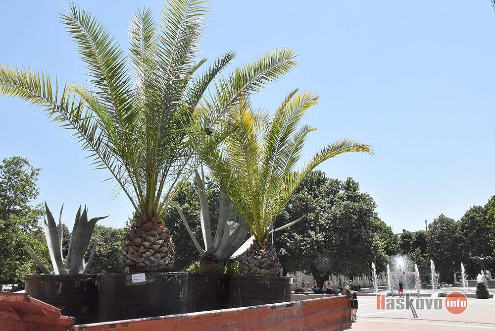 С настъпването на лятото от общината извадиха екзотичните растения в центъра на Хасково.