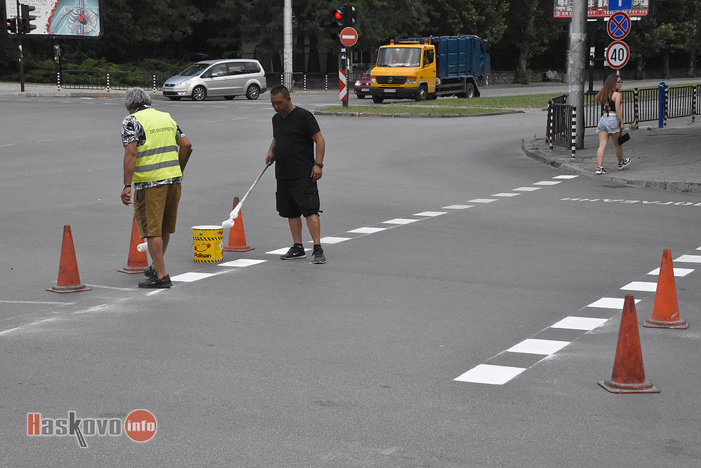 Продължава освежаването на маркировката по булевардите в центъра на Хасково.