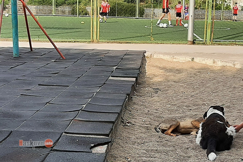 За бездомни кучета в пясъчника на детската площадка в хасковския парк „Авеню“ сигнализираха читатели на Haskovo.info, които настояват общината да реагира.