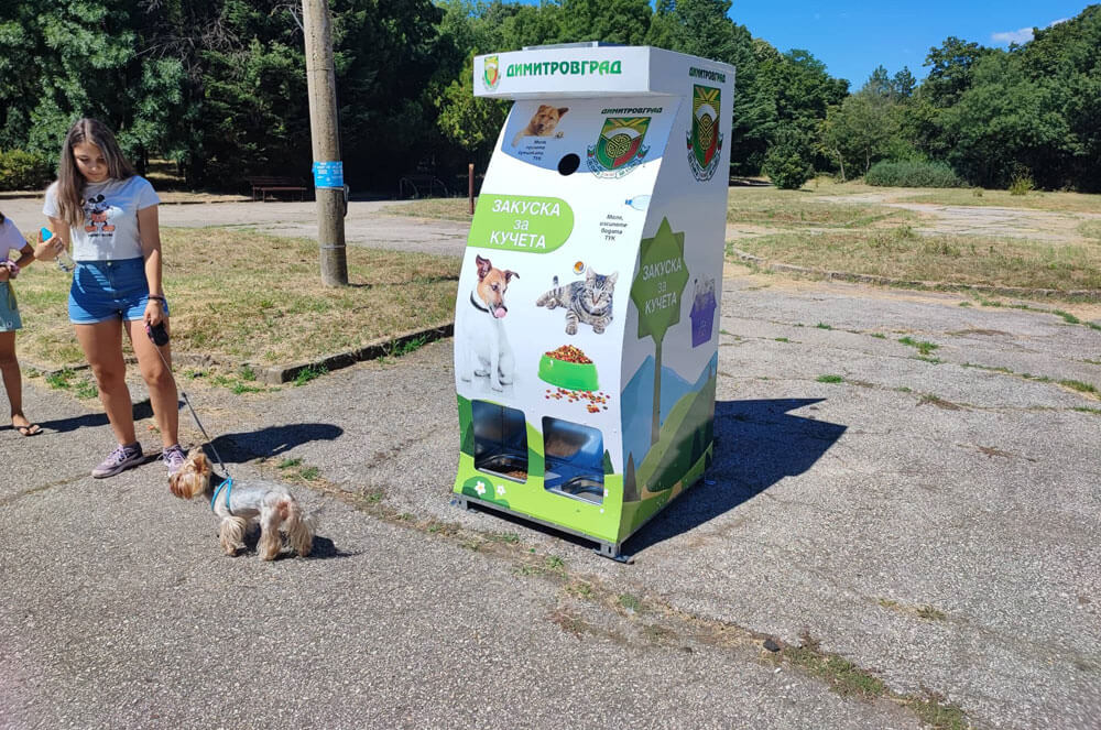 Автомат пуска кучешка храна срещу пластмасови бутилки в Димитровград
