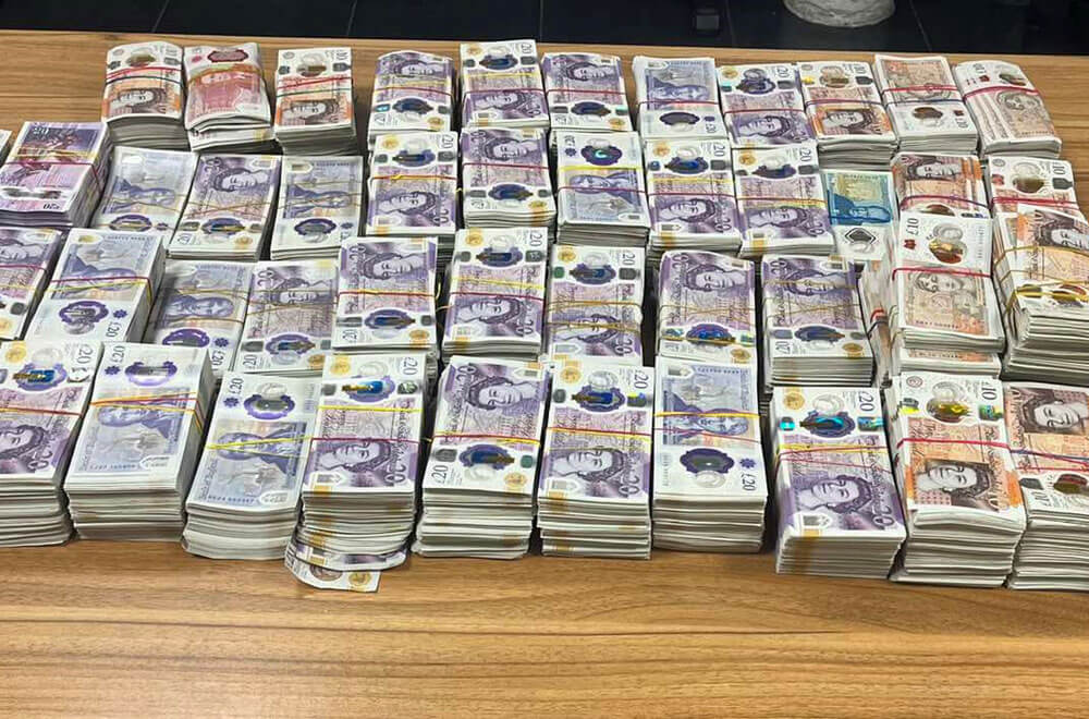 ВалутаОбщото количество на откритата недекларирана валута е 382 880 британски лири, 23 580 шотландски лири и 3 100 ирландски лири с равностойност 951 137 лева. Собственикът на чантите е задържан.