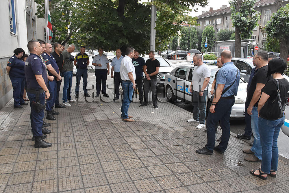 В 13 часа те се събраха пред Районното управление на полицията, където отдадоха почит на загиналите в изпълнението на своя професионален дълг. Паметта на двамата полицаи беше почетена по подобен начин от колегите им в цялата страна.