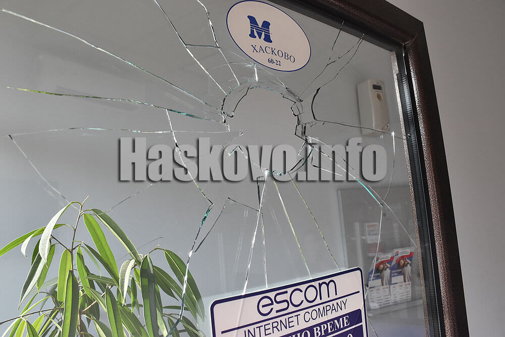 Хасковски фирмен офис осъмна с разбито стъкло.