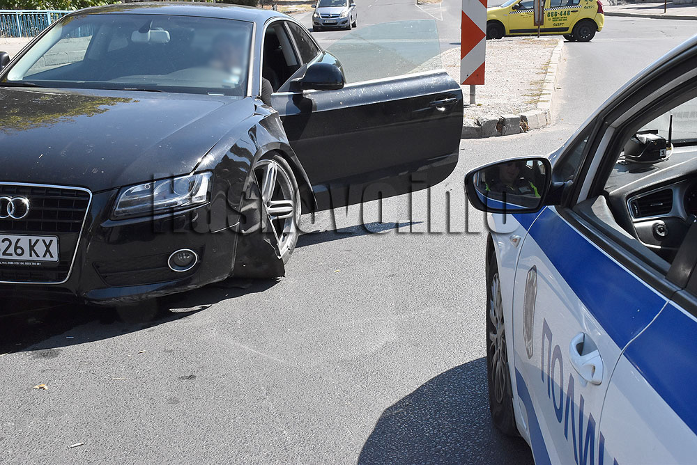 В ранния следобед пък на друго кръстовище на булевард „Васил Левски“ – това с булевард „България“ до Захарна фабрика, лек автомобил Ауди е поднесъл и се е блъснал в острова, разделящ платната.