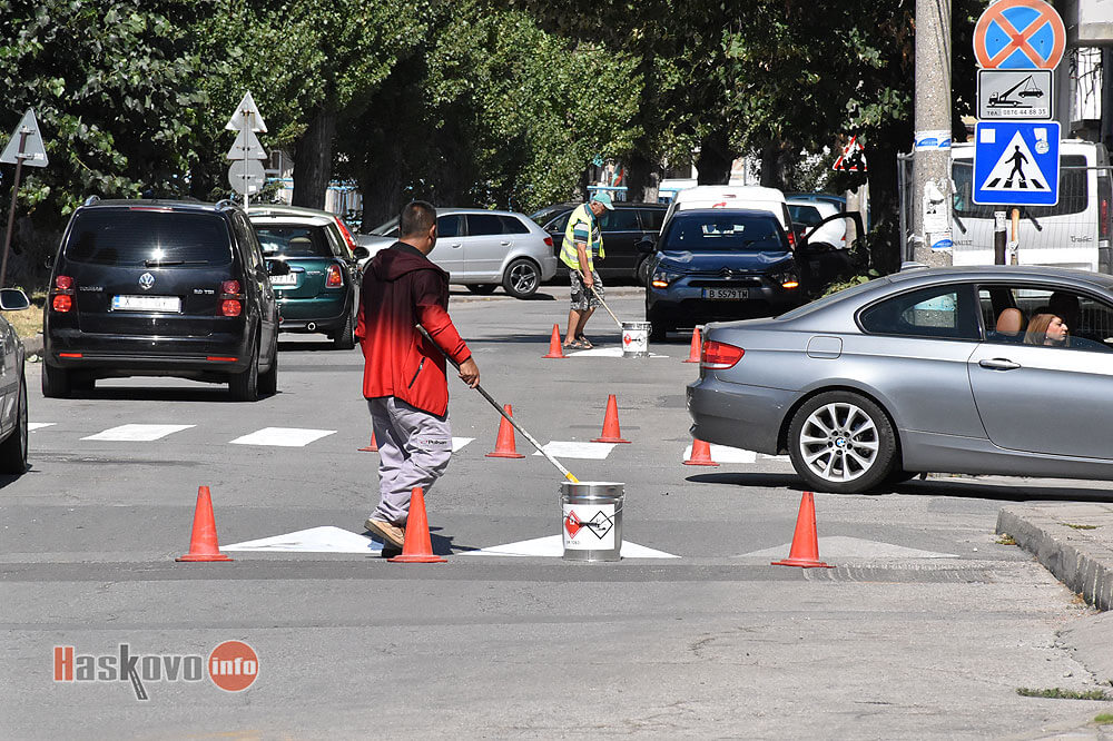 Преди първия звънец се освежава маркировката в района на хасковските училища.