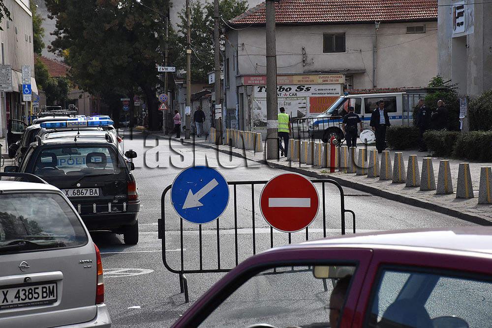Полицията затвори тази сутрин улица „Драгоман“ покрай спортна зала „Дружба“, където се помещава РИК – Хасково.