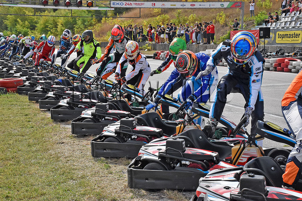 Над 200 пилоти от 13 нации, разпределени в 42 отбора, стартираха в 12:30 часа в 24-часово състезание на картинг писта Хасково.