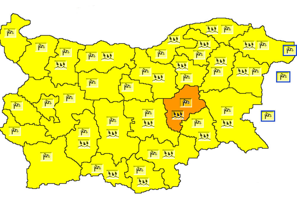 Жълт код за силен вятър и значителни валежи е обявен за неделя в Хасковска област от Националния институт по метеорология и хидрология. Опасни явления ще има в цялата страна.