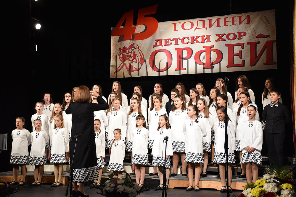 Хасковският Детски хор „Орфей“ с диригент Елена Цветкова изнесе празничния концерт „С песните на поколенията“ в препълнения с публика театър „Иван Димов“.