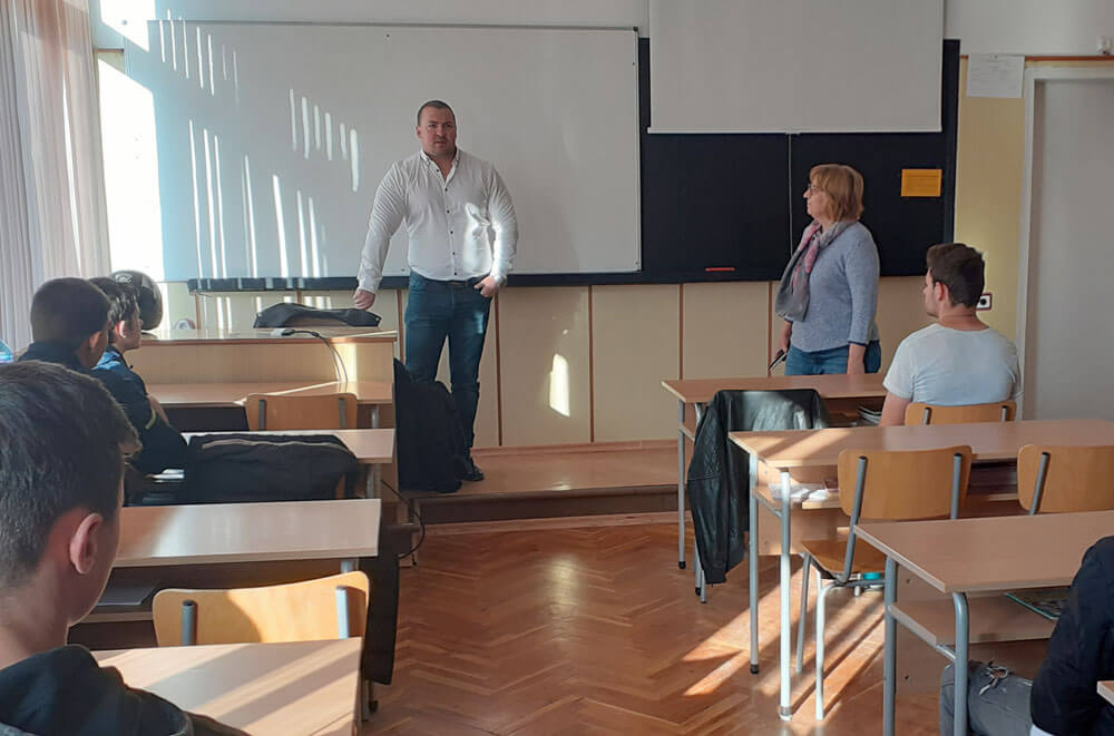 Делян Златанов бе гост на ученици от специалности „Електрически превозни средства“ и „Електрообзавеждане на транспортна техника“. Инж. Златанов направи презентация по актуалната тема „Водородни електрически автомобили“ и проведе интересен разговор с младежите за новостите в индустрията, за бъдещето на автомобилостроенето, разказа за своята работа в „Ягуар“.