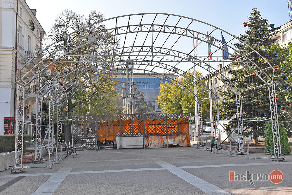 От общината демонтират сцената на хасковския площад "Свобода", за да я ремонтират.