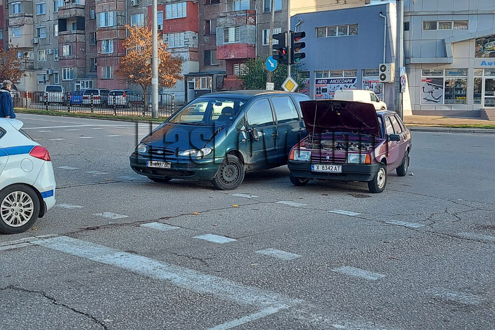 Шофьорът на лек автомобил Лада се е опитал да направи ляв завой към „Дунав“, когато е последвал удар със спускащия се по „Васил Левски“ Форд. От записите на камерите в района е установено, че Фордът е минал на червен светофар.