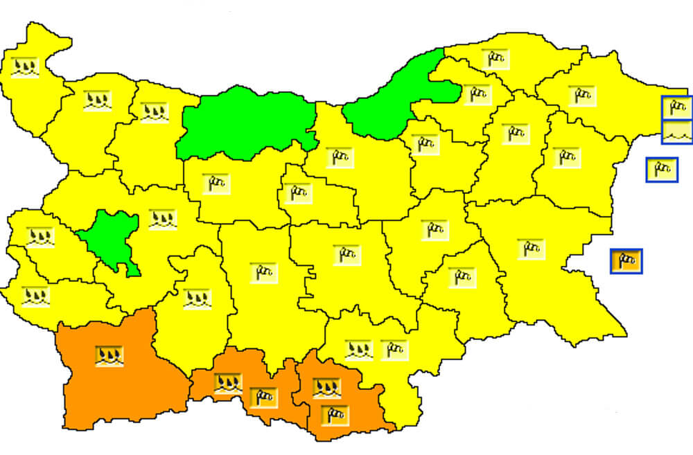 Жълт код за силен вятър е обявен и за неделя. В южните райони от областта ще има значителни валежи от дъжд с количества между 20 и 35 литра на квадратен метър.