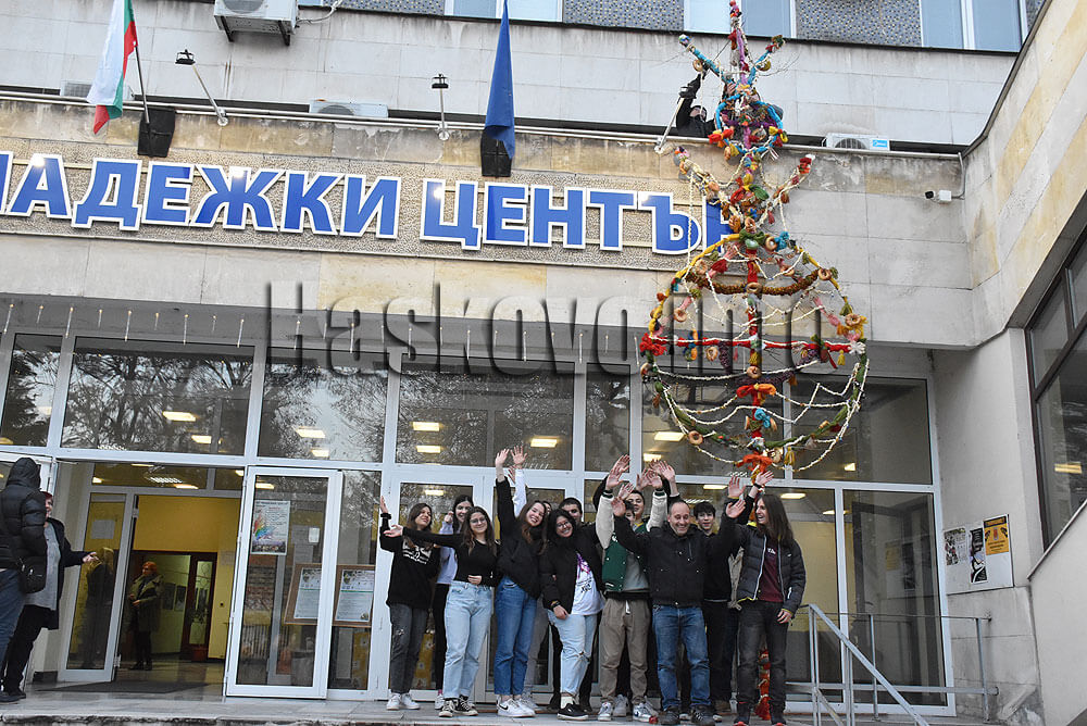 Издигнаха голямата сурвачка пред Младежкия център в Хасково