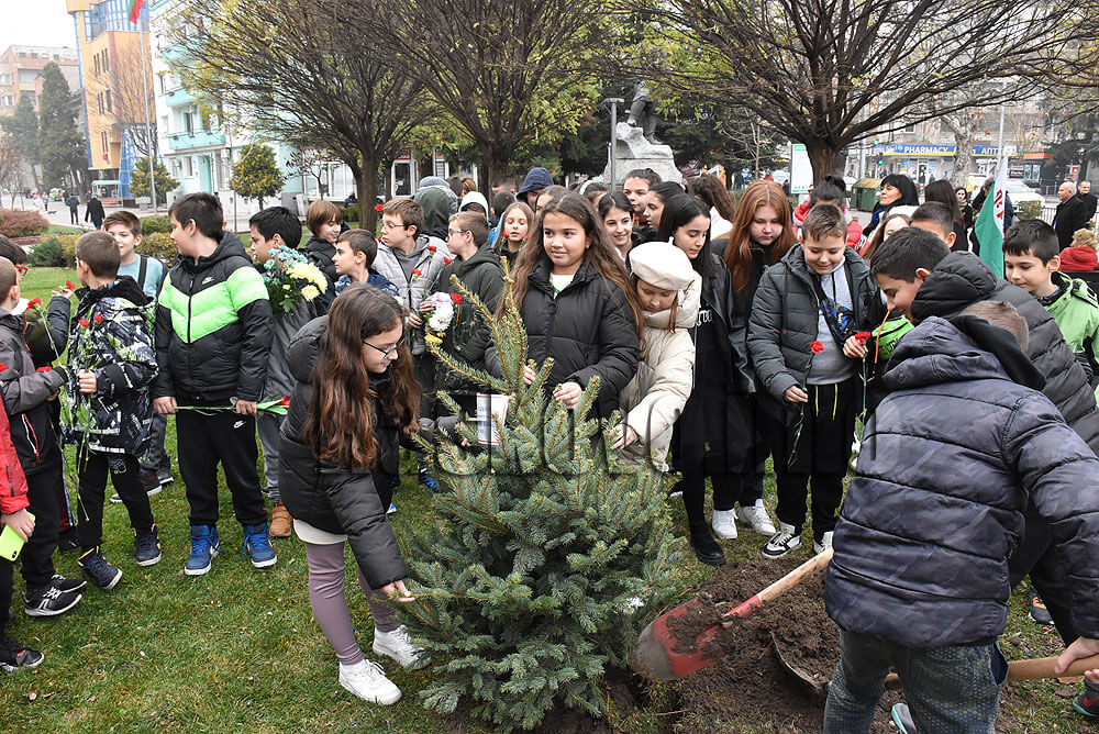 Ученици от ОУ „Христо Смирненски“ и ОУ „Св. Климент Охридски“ посадиха дръвче в градинката до паметника на Капитан Петко войвода в Хасково.