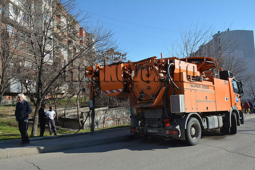 Мръсните води се разляха до 34 блок, като наводниха гаражи, магазин и дворно място. Пристигна вома на ВиК за отпушването на канализацията.