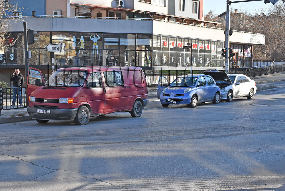 Верижна катастрофа с три коли стана следобед на натовареното кръстовище между булевардите „Освобождение“ и „Илинден“ в Хасково.
