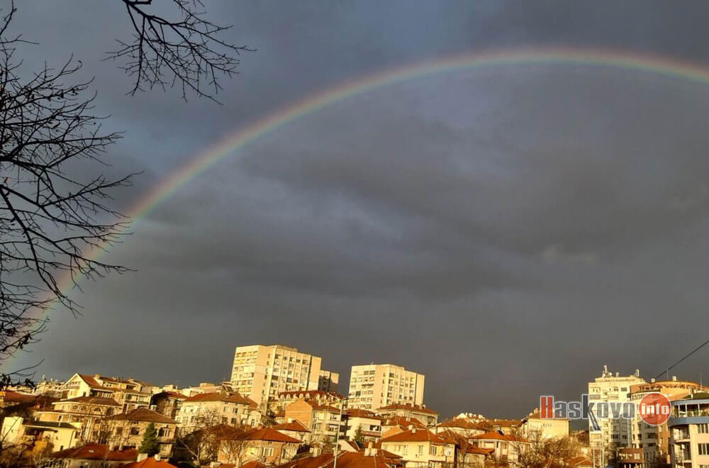 Красива дъга се образува в небето над Хасково при едно от следобедните превалявания.