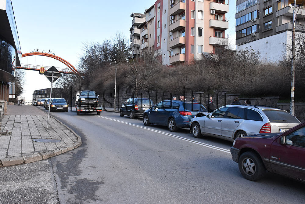 Няколко коли са се ударили преди оранжевия мост в посока центъра на града. В района се образуваха големи задръствания.