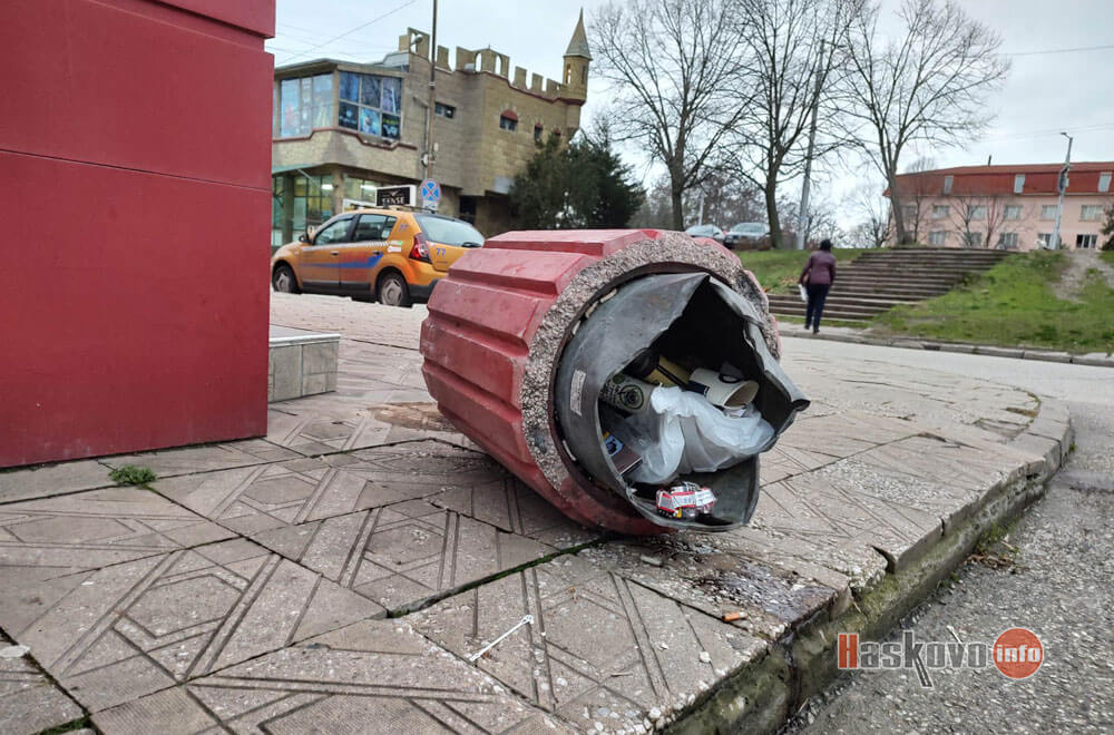 Читатели на Haskovo.info изпратиха снимка на мръсотия и съборено кошче на Веспрема в Хасково.