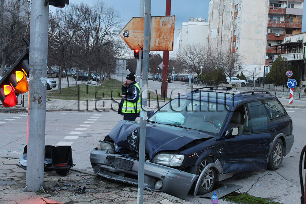 Последвал е сблъсък, при който Субаруто се е забило в една от секциите на светофара, която е паднала на земята. Пострадал е водачът на Субаруто, който е с контузия на крака.