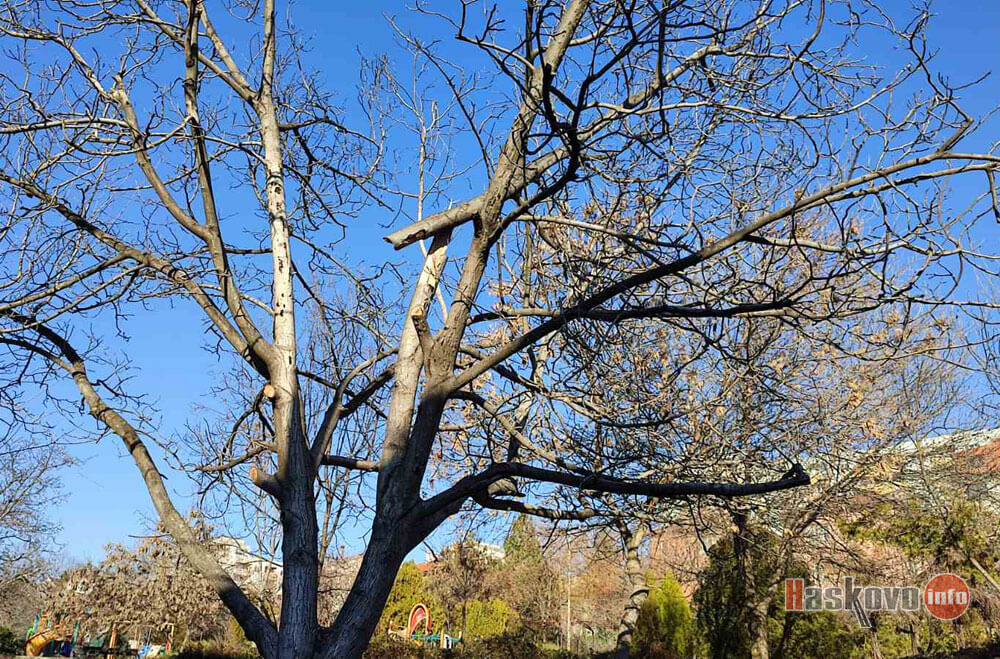 За счупен и опасно надвиснал клон на дърво в парка под Езиковата гимназия в Хасково сигнализираха читатели на Haskovo.info.