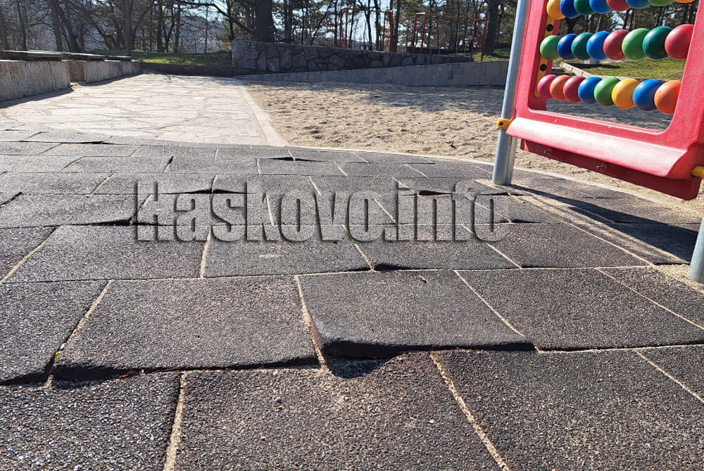 Тя се намира под заведението в парк „Ямача“. „Ъглите на настилката са изключително опасни, децата ни се спъват там и падат“, се казва в сигнала. Родителите настояват площадката да бъде ремонтирана.