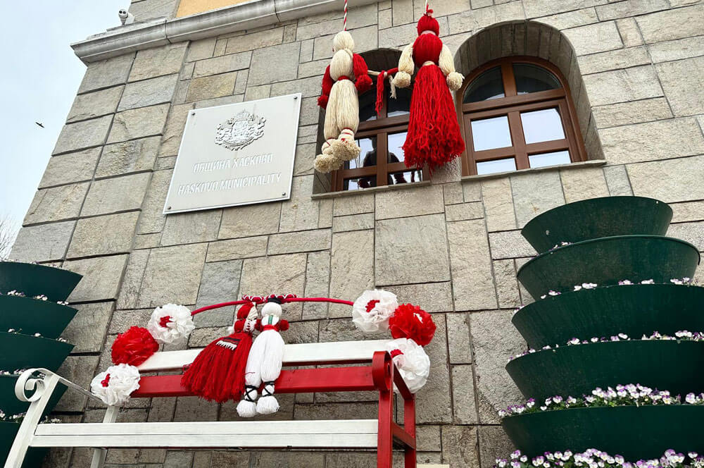 Мартенска украса е поставена за празника и пред сградата на общината в Хасково.