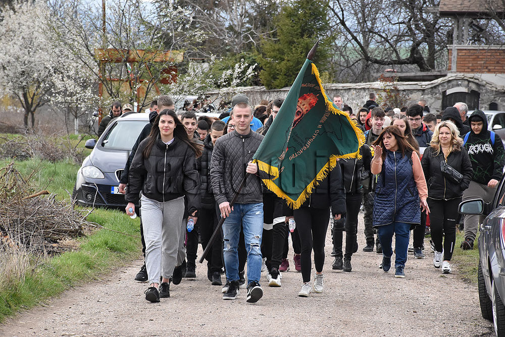 Ученици и учители от ПГДС „Цар Иван Асен II“ проведоха преди обяд поход до паметника на своя патрон край Хасково.
