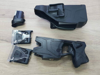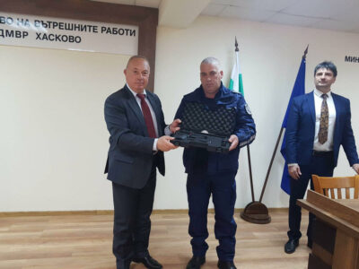 Заместник-министърът раздаде и шест електропреносими пистолета „Тейзър“ за служители от Областната дирекция на МВР в Хасково. Той подчерта, че ползването на Тейзър-ите ще бъде възможно след преминато обучение.